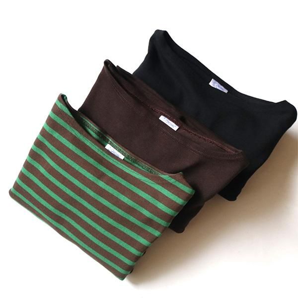 ボートネックの特徴的な開き具合を活かしながら、インナー次第で季節や気分に合わせた重ね着ができるのも、バスクシャツの魅力の一つです。