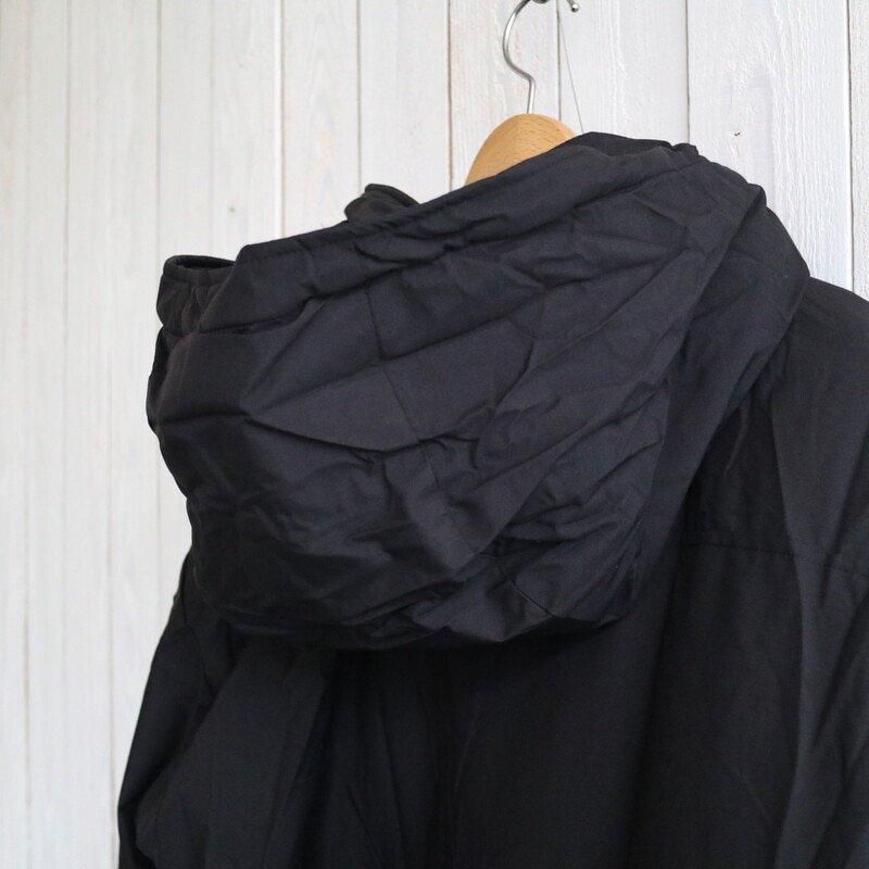首元のファスナーを開けると収納式フードが出現し、フード・ウエスト内側にはドローコードを搭載。外気の侵入を防ぎながらフィット感の調節もできます。