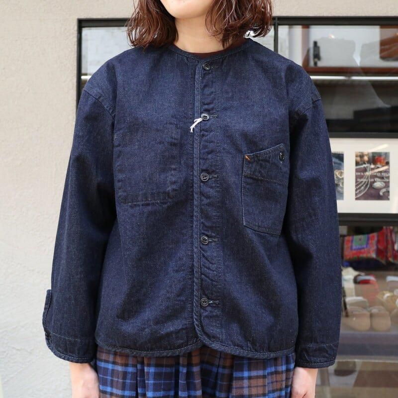 袖先やネック部分など、縁取りはデニムでパイピングされており、ジャケットの輪郭が際立つ仕様になっております。