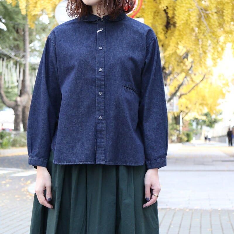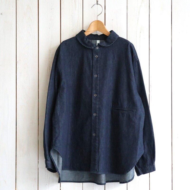 時代に左右されないベーシックなシルエットが魅力のデニムラウンドカラーシャツ。