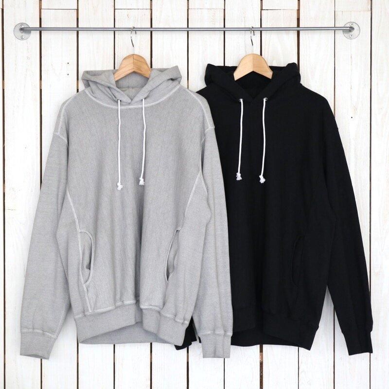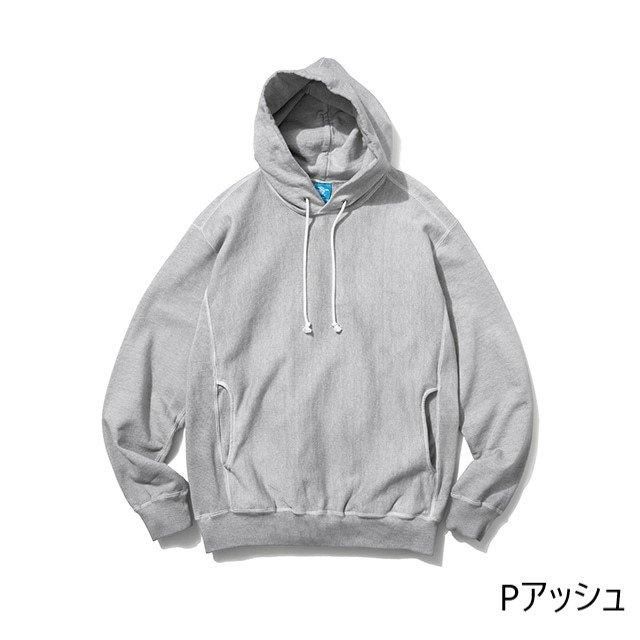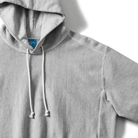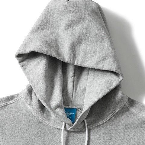 厚みと密度のある13オンスのヘビーウェイトスウェット生地を使用した『グッドオン』の「ヘビープルオーバーフードスウェット」。着応えのあるヘビーウェイトスウェットの生地感を生かしたベーシックでシンプルなデザインです。