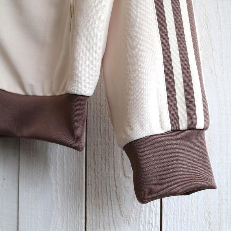 かつてサッカー界で「皇帝」と呼ばれた伝説的なドイツ人「フランツ・ベッケンバウアー」がW杯優勝時に着用していたことで余りにも有名なシグネチャートラックトップは、時代を超えたルックスが魅力。 トレフォイルロゴの刺しゅうでひねりを効かせ、ソフトなコットン混紡素材を使用した、デイリーウェアにぴったりの一着。 スリムフィットのフルジップの作りが、どんなコーディネートもスタイリッシュにまとめてくれます。 ポイントは、かっちりとした雰囲気を演出するスタンドカラー。