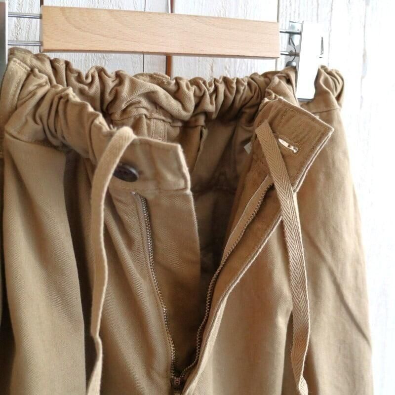 従来のチノサーカスパンツに比べてウエストをゆるく、紐で絞れる仕様になりました。