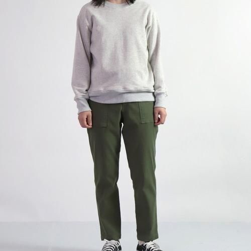 股上をやや深めに、腰回りに丸みを持たせ、股下から裾に向かって細くなるテーパードシルエット。足元がきれいにまとまり、あらゆるトップスと好相性。バランスも取りやすく全体のシルエットをスッキリ見せてくれます。