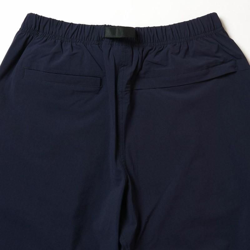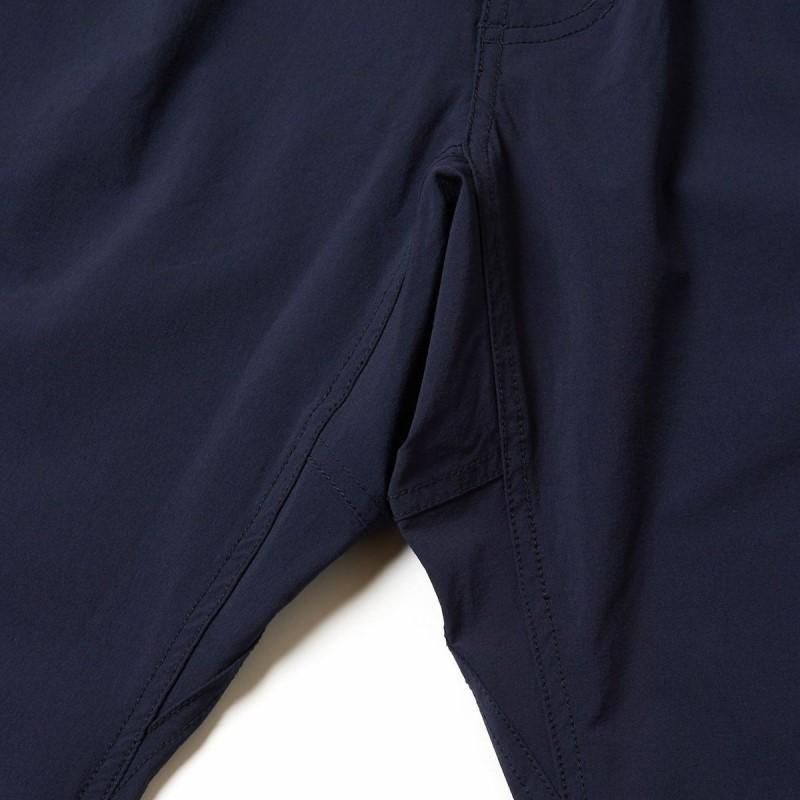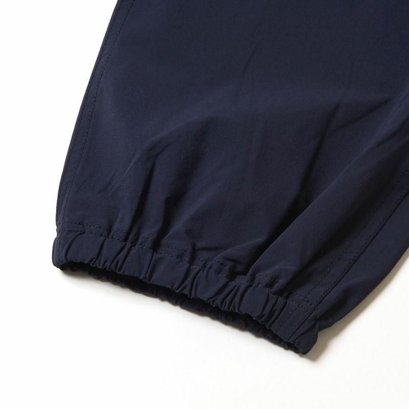 タテ・ヨコ・斜めすべての方向に伸びる伸縮性に富んだ4ウェイストレッチは、ストレスフリーで着用いただけます。軽量でタフなナイロン素材でドライタッチと製品洗いを施したワッシャー感が特徴。また、右足膝部分に共色で入るロゴ刺繍がさりげないアクセントになっています。