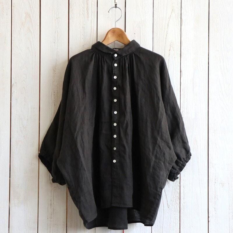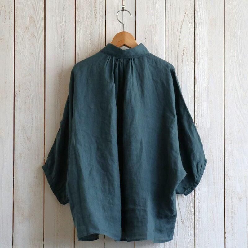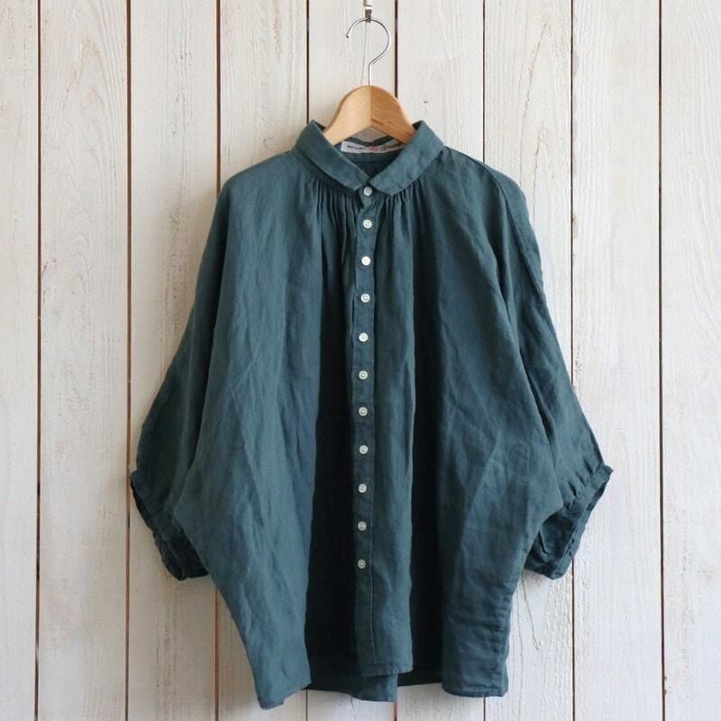柔らかいリネン生地に、たっぷりとしたドルマンスリーブが作り出すドレープ感のあるふんわりとしたフォルム。