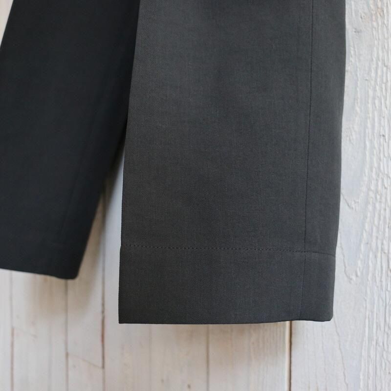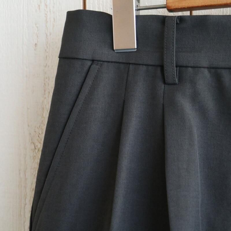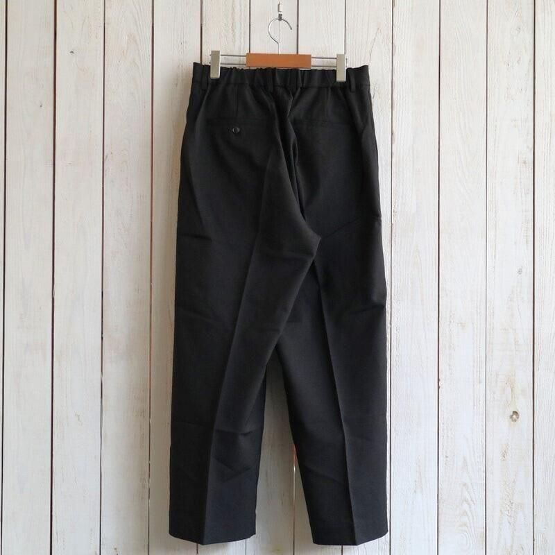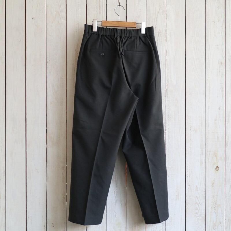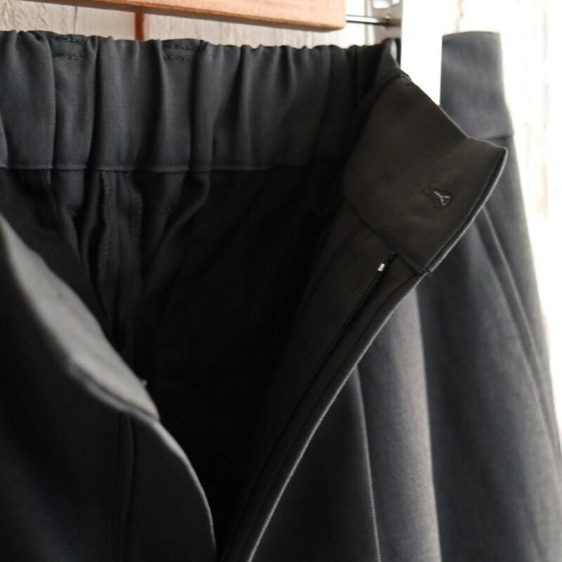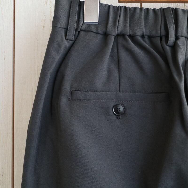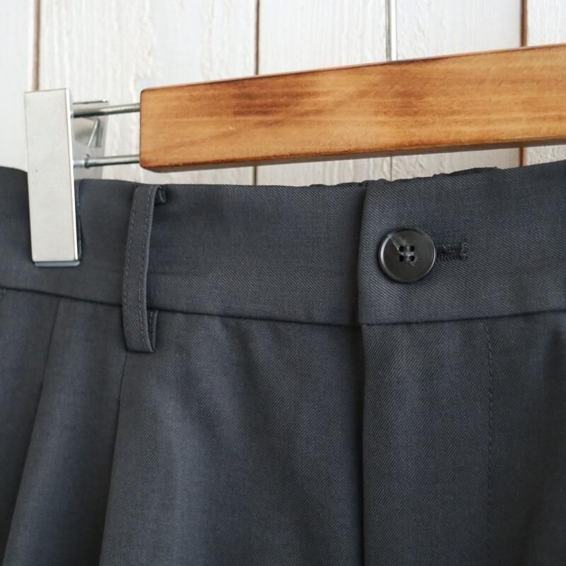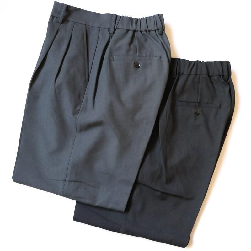 ワイドなシルエットが抜け感を演出しつつ、深めの2タックが腰回りに立体感をもたらす。シンプルな中にもテクニカルな工夫を感じさせる、現代的なスタイリングに馴染むスラックスです。