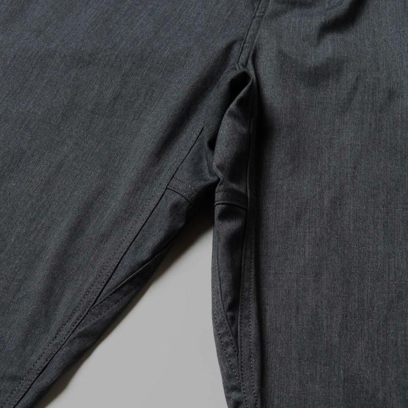ウエストは片手で調整できるイージー仕様。股下のガゼットクロッチは180度開脚も可能で、自転車やアウトドア、旅行、デイリーにも活躍。スラッシュポケットや玉縁ヒップポケットなど収納性も充実。