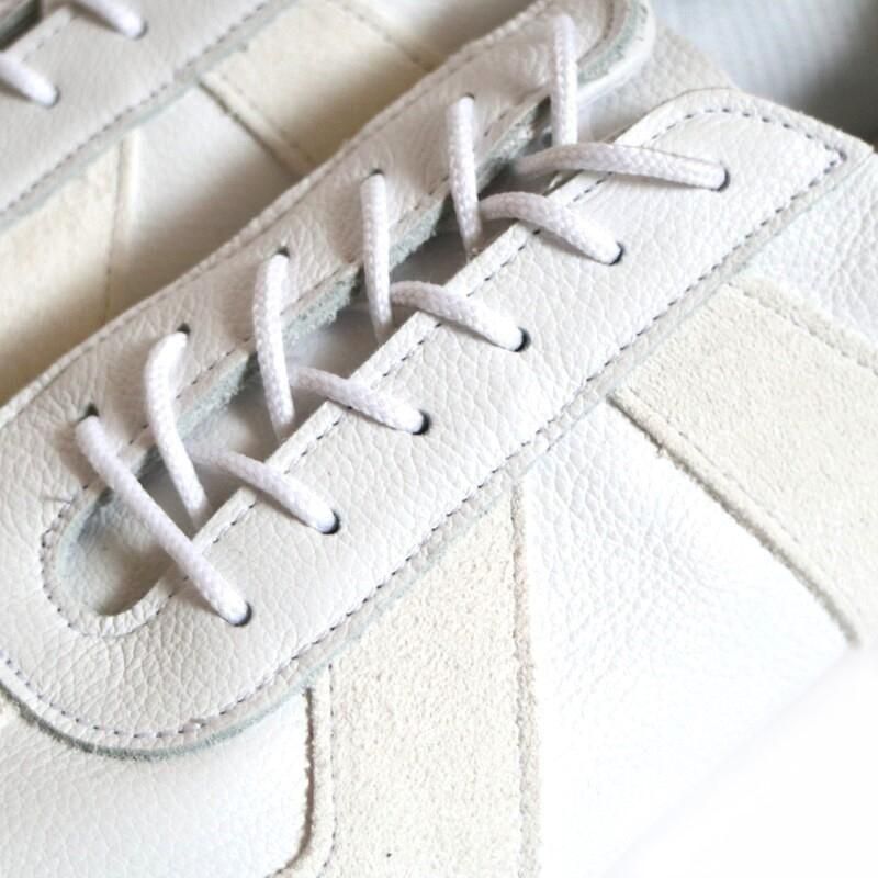 ジャーマントレーナー。 その名の通り、ドイツ軍の室内用トレーニングシューズとして生まれた靴だ。 無駄のないパターン、切り替え、補強。 軍靴らしい機能美は、そのまま街の定番になった。 〈CROWN〉は、その設計図に少しだけ魔法をかけた。
