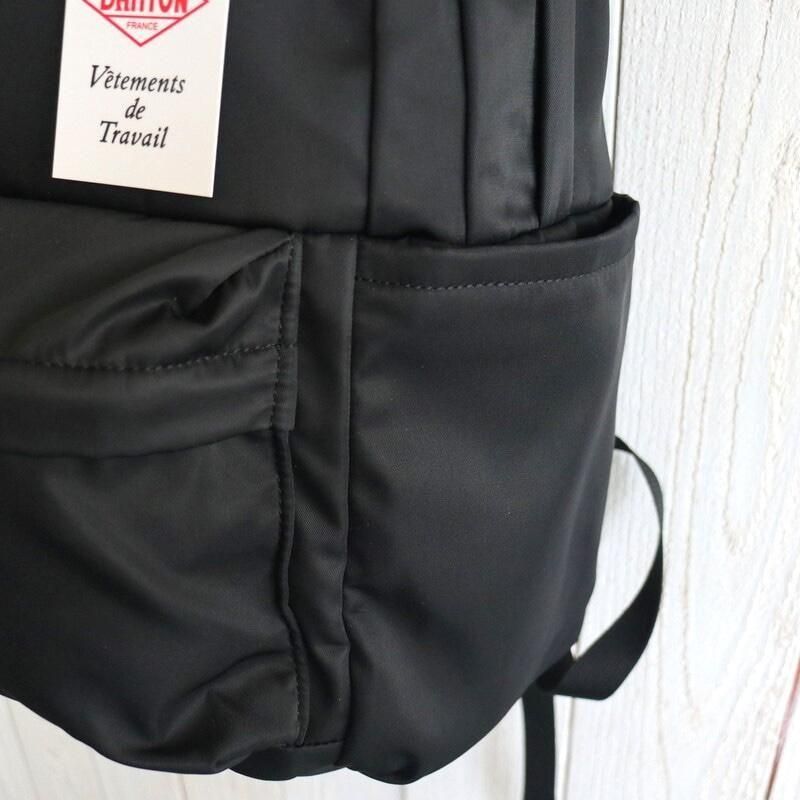 光沢感を抑えたマットな質感が特徴のポリエステルツイル素材を使用したバックパック。 ファスナーにDANTONオリジナルの引手が付いており、開閉しやすい仕様。 本体部分はダブルファスナー開閉式で、両サイドには便利なポケット付き。 背面は内部に芯材入りのメッシュ仕様で、長時間背負った時にも身体に負担のかかりにくいデザインになっています。 前面上部のポケットは、開けると小分け収納に便利なペン差しやキーフックが装備。 前面下部のポケットはマチ付きアウトポケットで、パッカブルの軽アウターやポーチ等が入ります。 シンプルな見た目以上にしっかりとした収納力のあるバックパックは、日常使いから通勤まで幅広いシーンにマッチします。