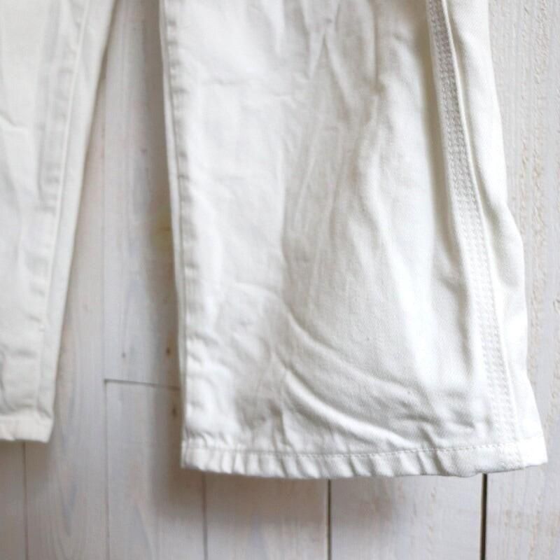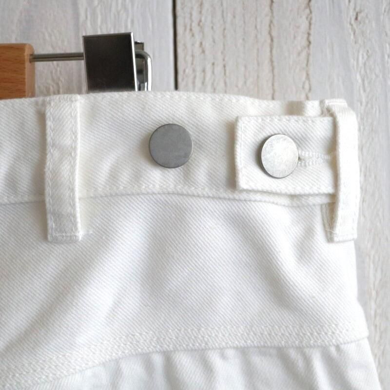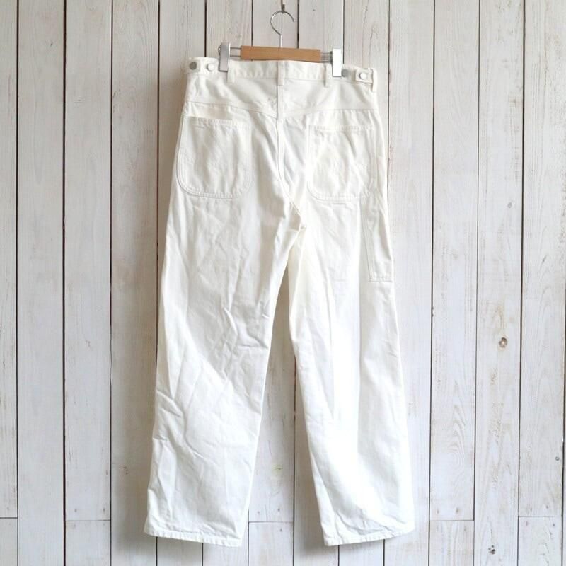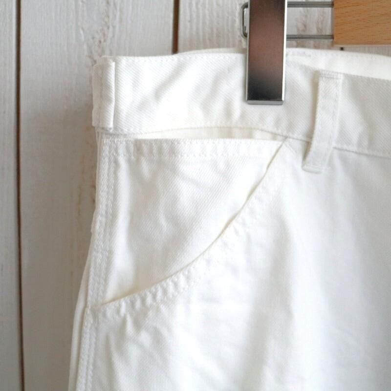 オーガニック糸を使用したデニムパンツ。糊なしのソフトな風合い出しの加工をし、ウェストのアジャスターを調整することでフレキシブルに男女ともに対応できるペインターパンツです。同素材の