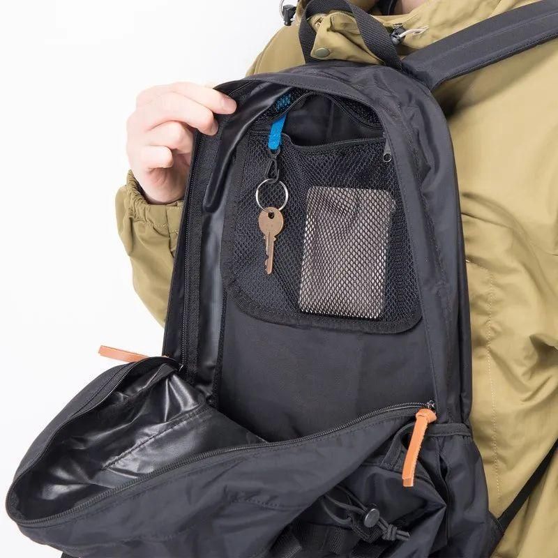 メインポケットにはキーフック付きメッシュポケットを配置し、貴重品や小物の整理に便利。