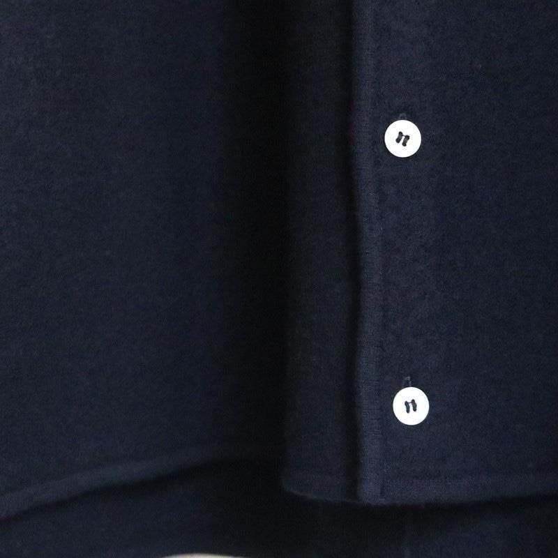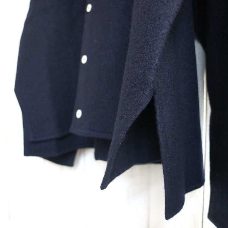 ソフトな風合いのウール100%を使用した長袖のカーディガン。 縮絨加工を施した柔らかな肌触りで、適度な厚みがありながらも軽い着心地です。 ゆとりのあるサイズ感にサイドスリットが入っており、ボトムスとバランスのとりやすい一着。 左裾の同系色のブランドロゴ刺繍がさりげないアクセント。