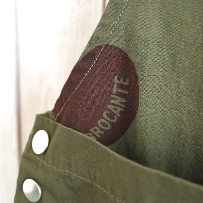 フロントはエプロンのような前掛け型のデザインで、大きめのポケットを複数備えた機能的な仕立て。サイドはボタン仕様でレイヤードがしやすく、Tシャツやスウェットの上からはもちろん、ジャケットとの重ね着にも対応する万能な一枚だ。