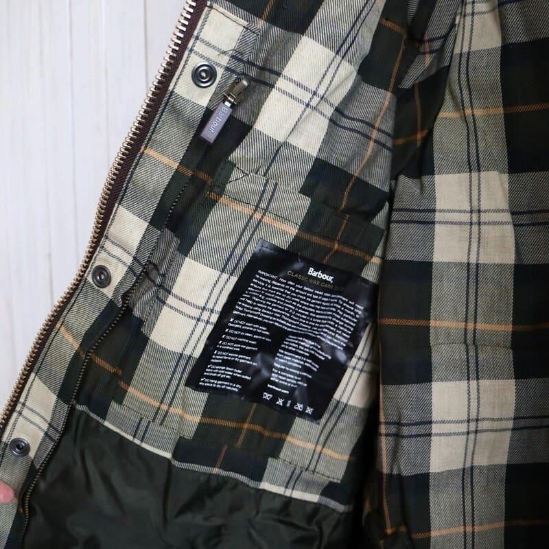 裏地にはバブアーの伝統の証であるハウスタータンチェックをあしらっており、人目を引くディティールも人気の一つです。