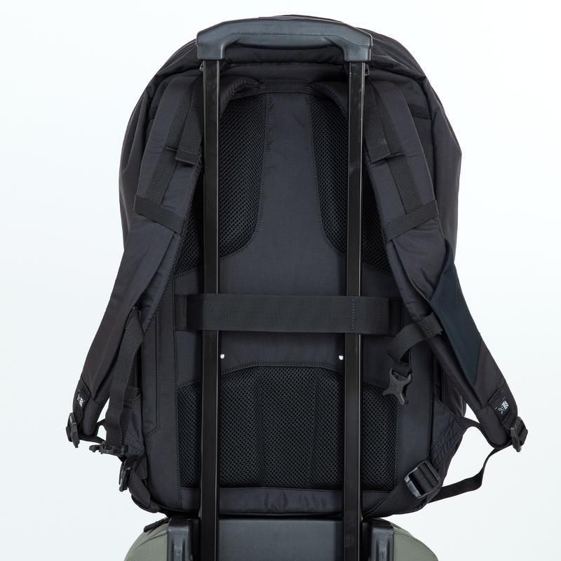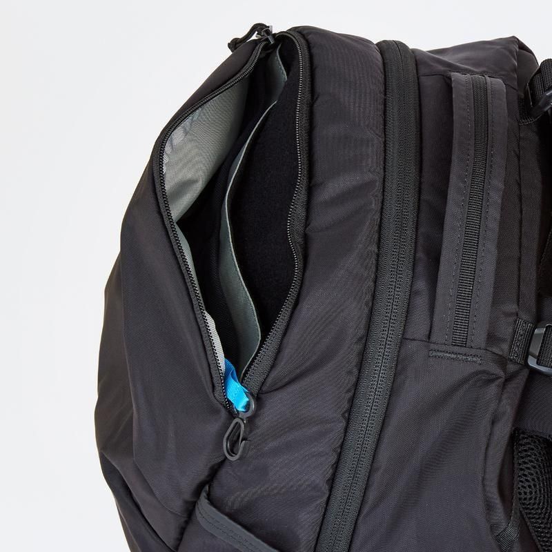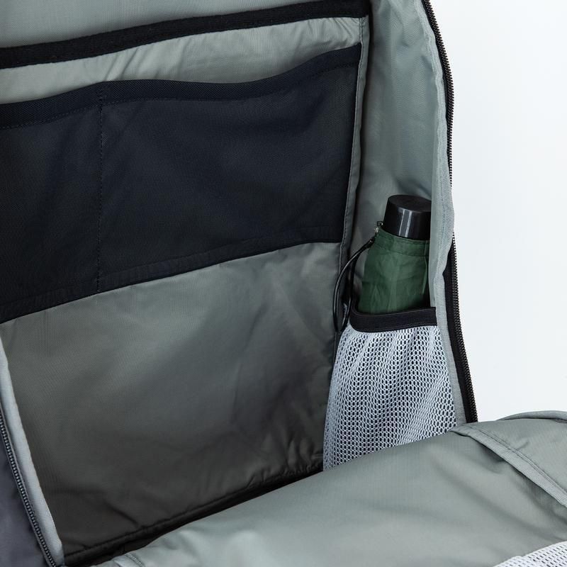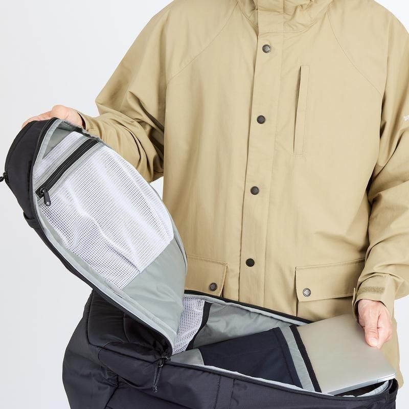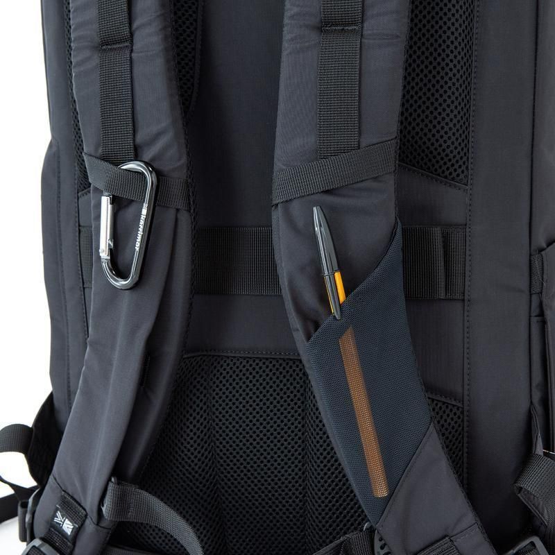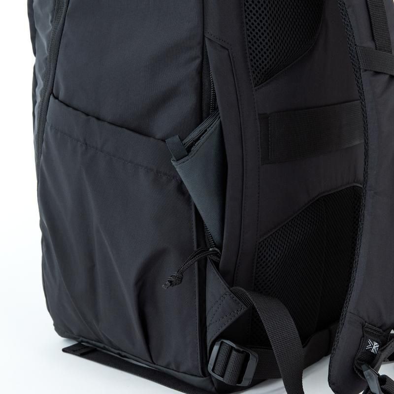 シンプルなデザインながら、充実の機能を備えたリュックサック。 耐久性に優れたCORDURA生地を使用し、耐摩耗性に優れたPCコーティング加工を採用。 大きく開くメインコンパートメントは、手軽に荷物の出し入れができます。 内部には、小分け収納できるポケットや、PCポケット、傘入れメッシュポケットなど、旅行や日常使いに便利な仕様になっています。 両サイドにはワンドポケットが設けられていて、500mlボトルなどを簡単に収納できます。 フロントポケットにはキーフックや小物の収納に便利なメッシュポケット付き。 背面はキャリーケースのハンドルに通すことが可能。
