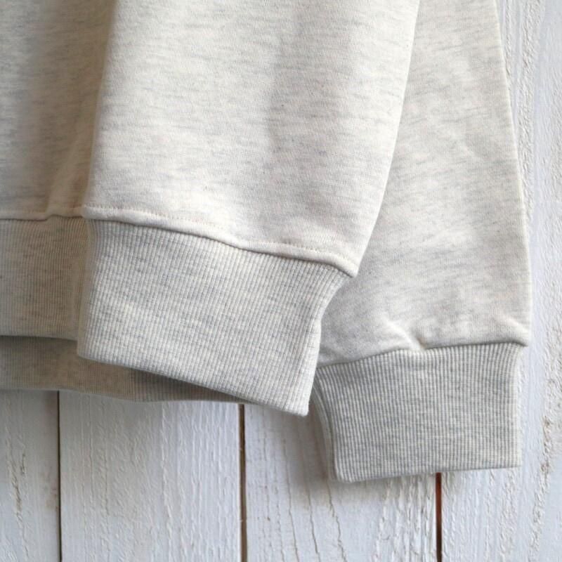 ゆったりとしたリラックスシルエットに、聖歌隊の制服にみられるクワイアボーイカラーを施したスウェットシャツは、80年代をイメージさせる懐かしさを纏っている。程よい厚みと柔らかな裏パイル仕様により、シーズンを問わず快適な着心地を提供します。