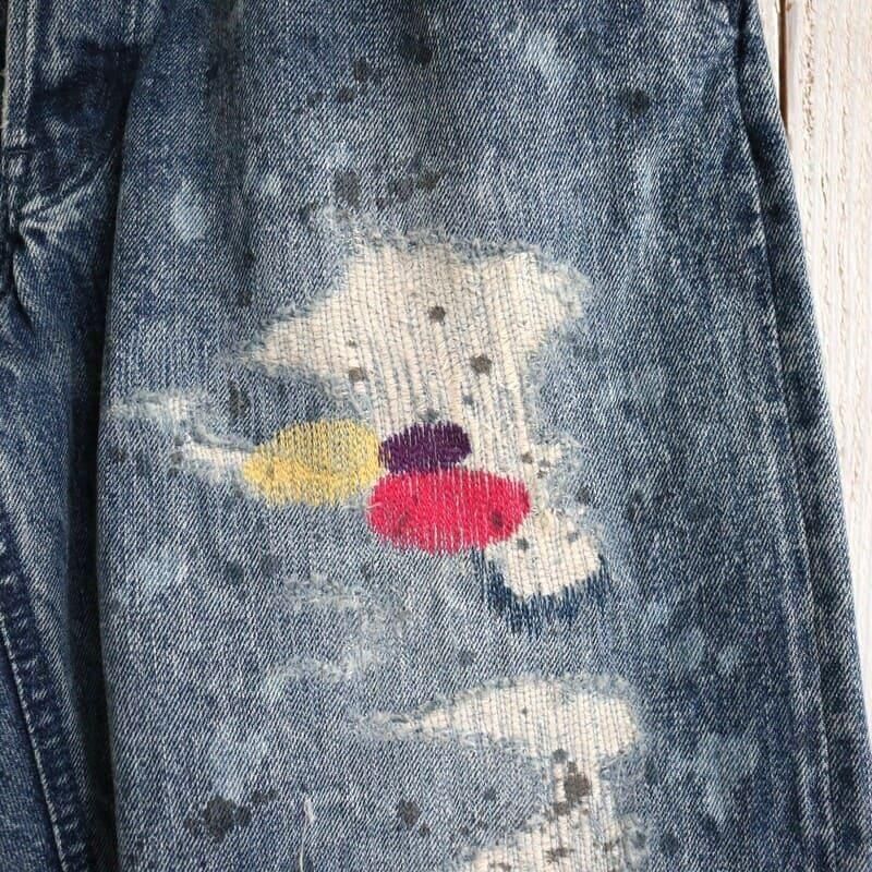 ユーズド加工、リペア、ペンキ、ステッチなど盛りだくさんの技術を集結したアートなデニム。