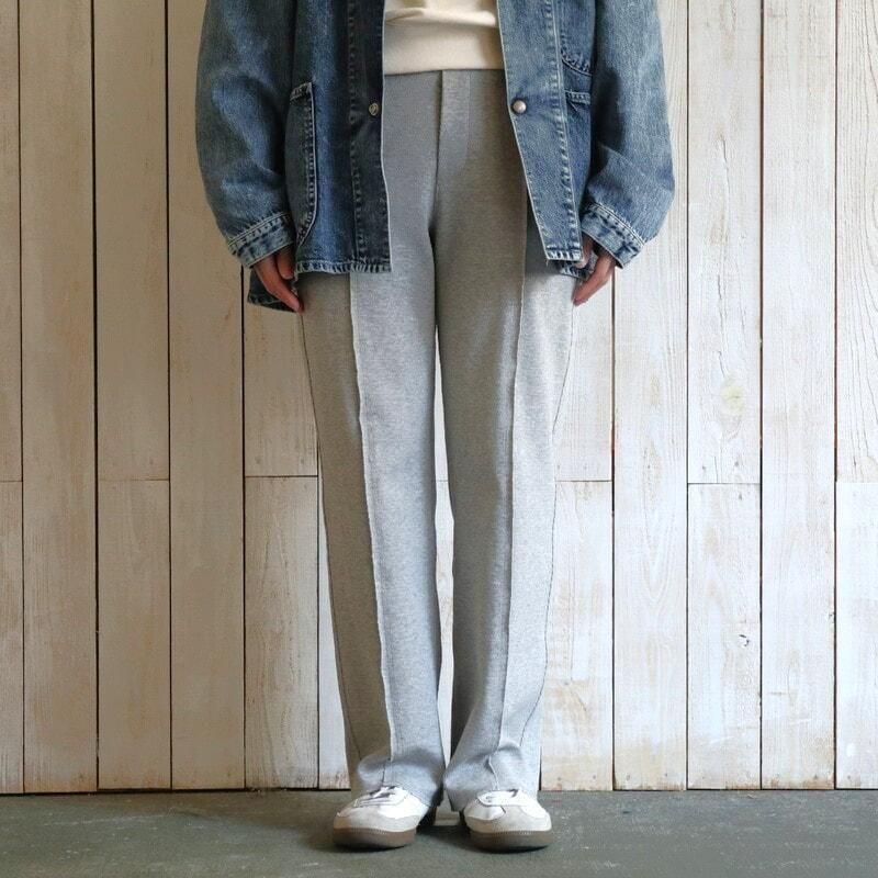 センターシームが縦のラインを強調し、脚をすっきりと長く見せてくれるので、リラックス感のある素材ながらも全体をきれいめな印象に引き締めてくれます。