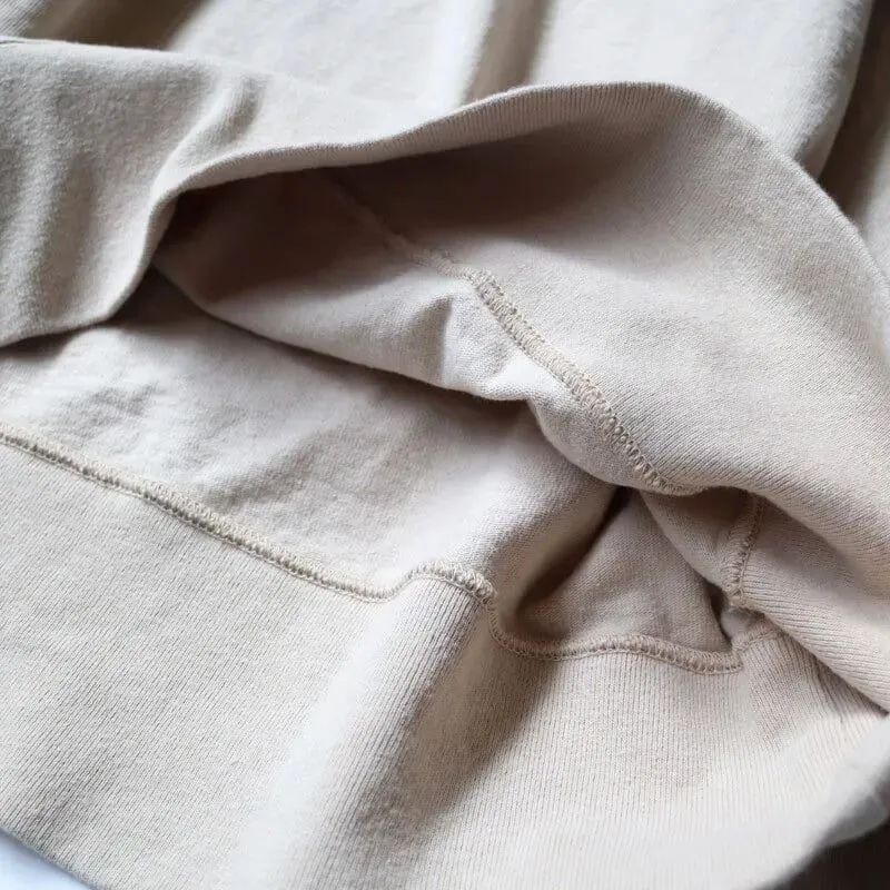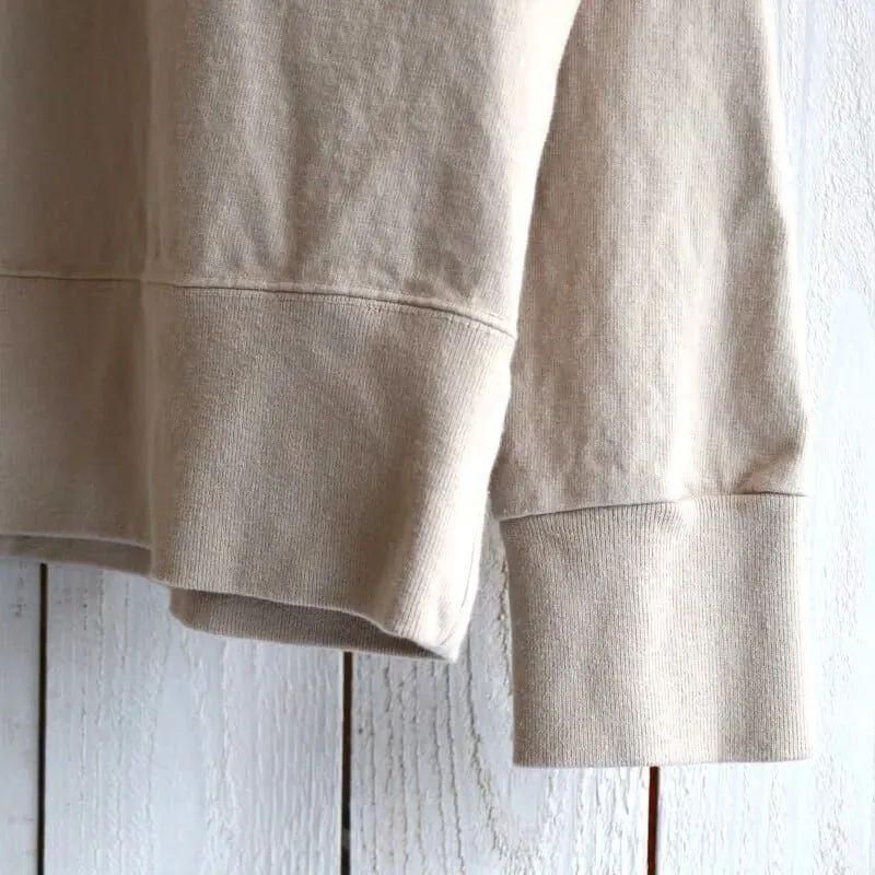 9ozのUSコットンをヘビーウェイトに編み立てており、何度洗いをかけても伸びないタフさを備えています。ドライタッチな肌触りが特徴のUSコットンは、着込むごとに身体に馴染み、柔かな風合いへと変化していきます。