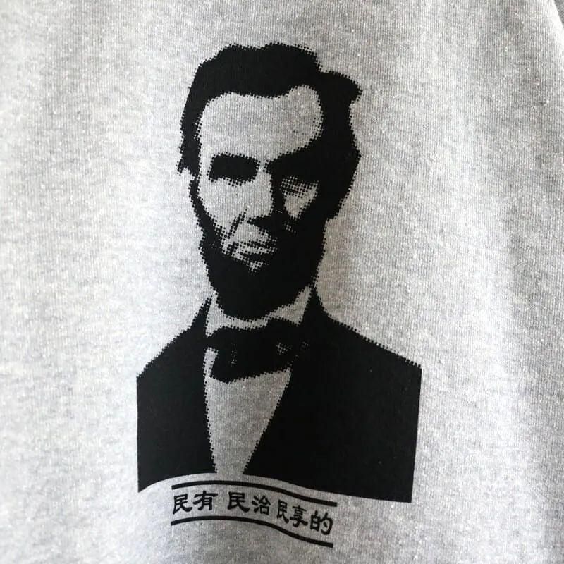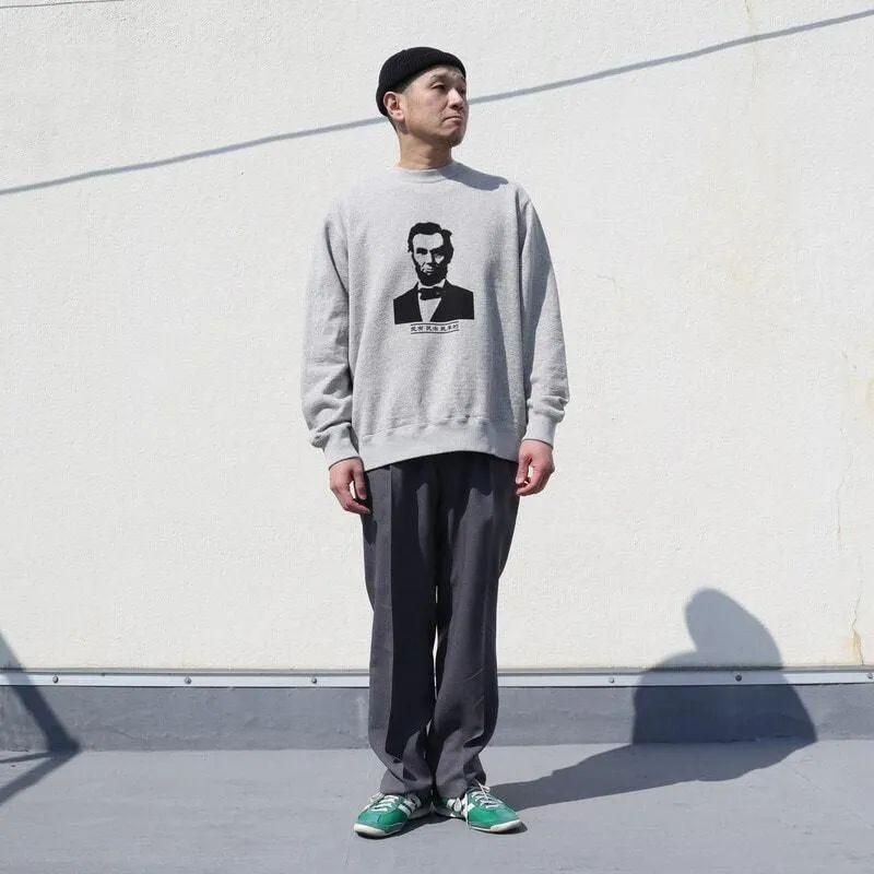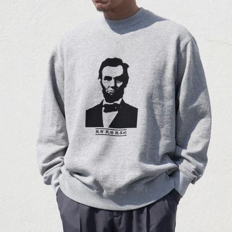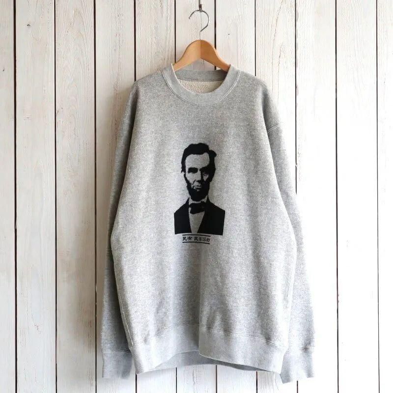 着古したようなネップ感のある生地にリンカーンのグラフィックは、ビンテージのベートーヴェンのスエットを彷彿とさせる。