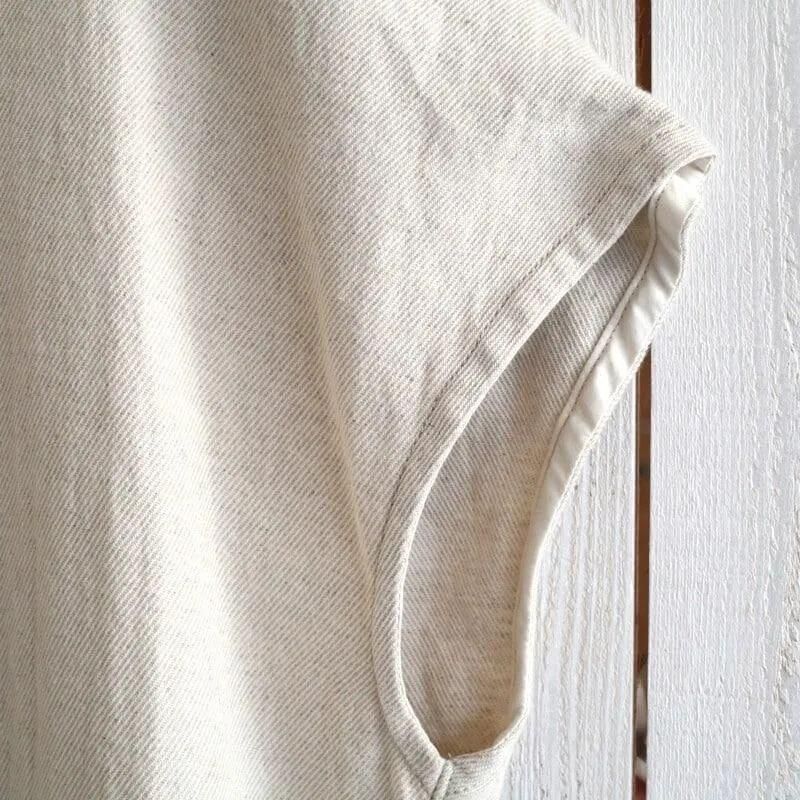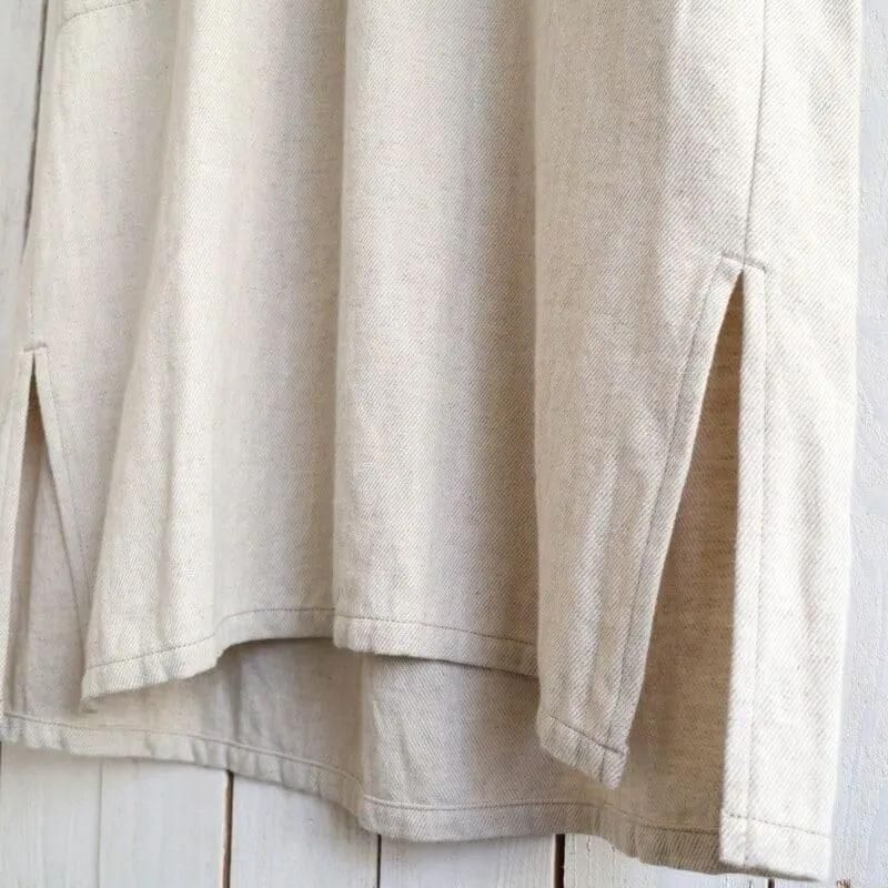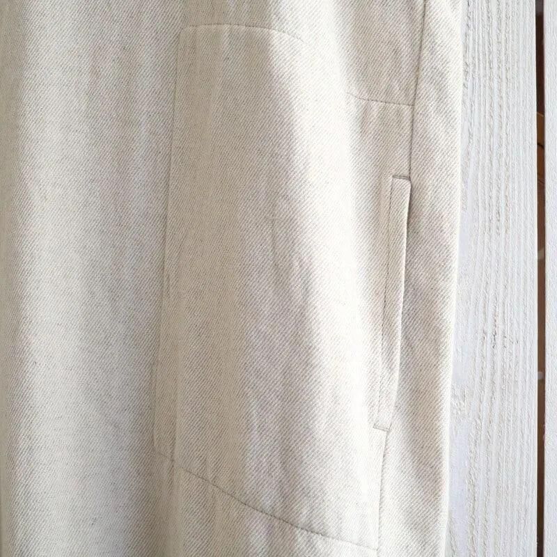 素材には、コットンリネンに少しウールをミックスしたギャバジン生地を使用。 程良い厚みとふっくらとした表面感が特徴で、着るだけで雰囲気のある一枚です。 ウールが入っていることで、季節の変わり目にも活躍してくれます。